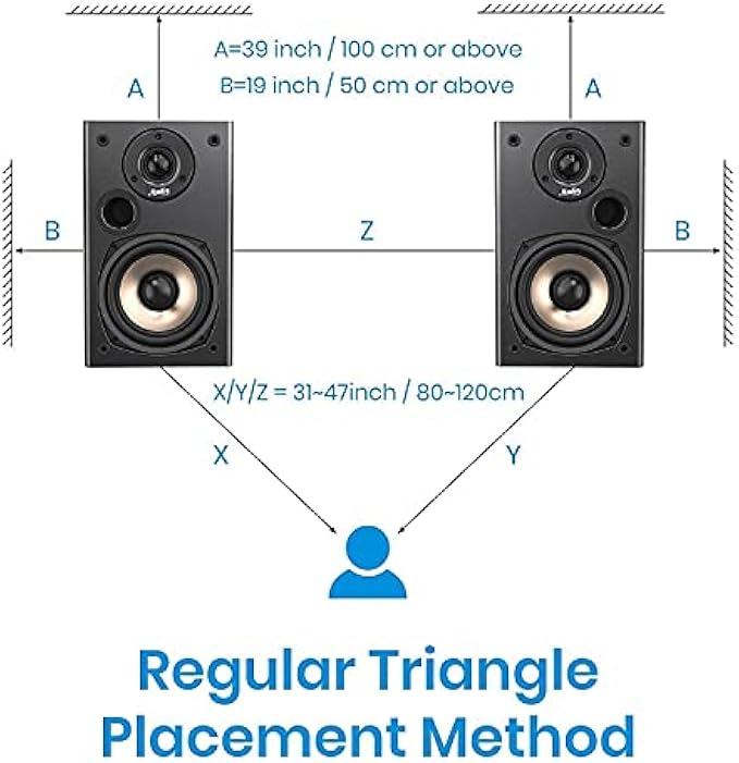 Premium Sound Quality: Moukey bookshelf speakers feature 1 inch treble unit (1) and 5 inch bass unit (1), so they are able to produce clear treble at higher frequencies and powerful bass at lower frequencies. And the built-in crossover in the speakers will split up audio signals and send them to drivers designed for specific frequency ranges to improve your listening experience